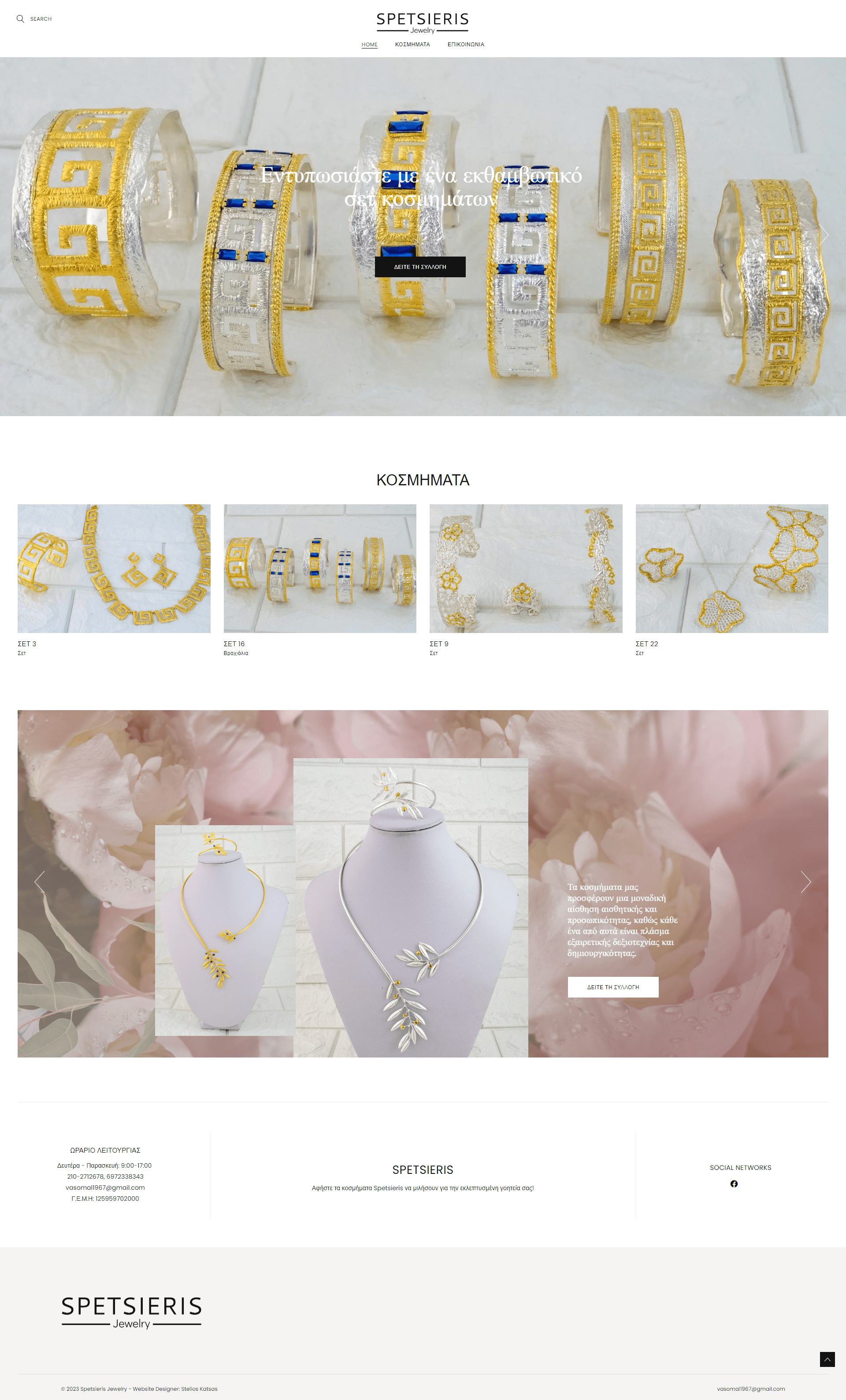Από το 1970 με πίστη και σεβασμό στις παραδόσεις του τόπου μας, το εργαστήριο χρυσοχοΐας της οικογένειας Σπετσιέρη, συνεχίζει την διαχρονική του πορεία από γενιά σε γενιά, κατασκευάζοντας αυθεντικό χειροποίητο ελληνικό κόσμημα σε ασήμι 925°. Δημιουργούμε μοναδικά κομμάτια αναμφισβήτητης ποιότητας και στυλ, με πινελιές σύγχρονου κοσμήματος σε ένα αρχαιολογικό design.